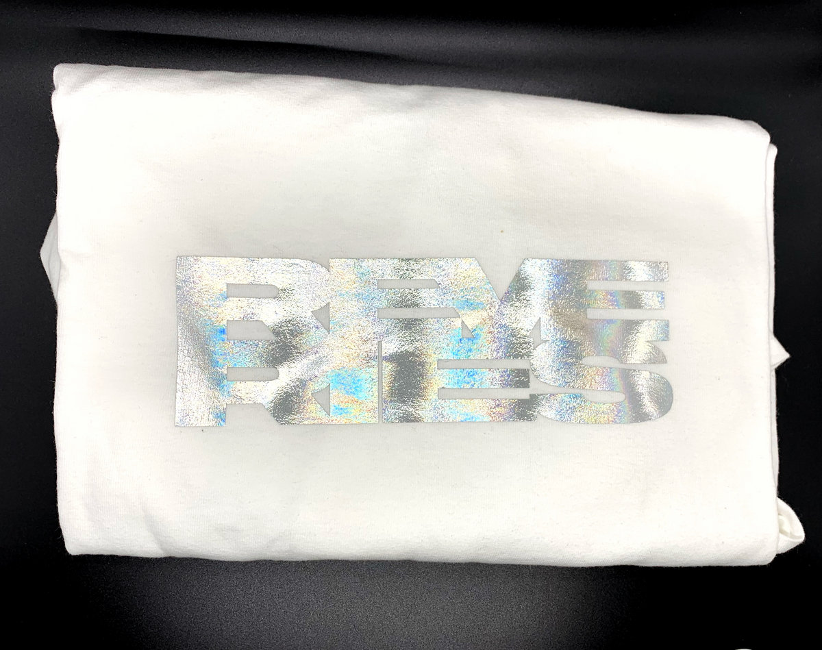 Simple Chrome vinyl logo on white cotton T-Shirt